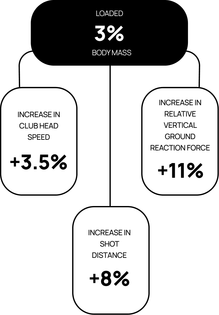 10 highly-skilled female golfers performed two trials of 10 shots with a 3-iron club. The first series were unloaded, the second, loaded with a total of 3% body mass via Exogen Top and Exogen Shorts.